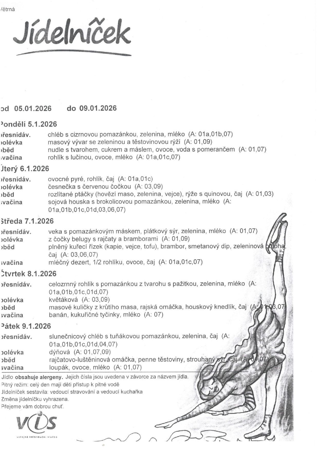 JÍDELNÍČEK MŠ 5. 1. - 9. 1. 2026