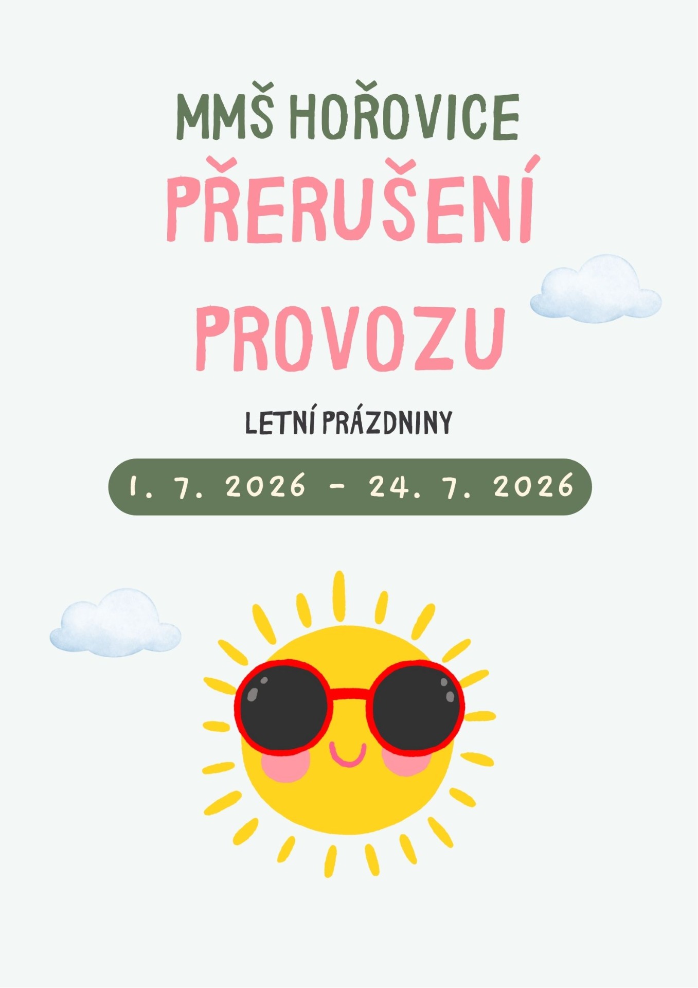 Vážení rodiče, pod tímto textem najdete důležité informace o prázdninovém provozu naší MŠ.